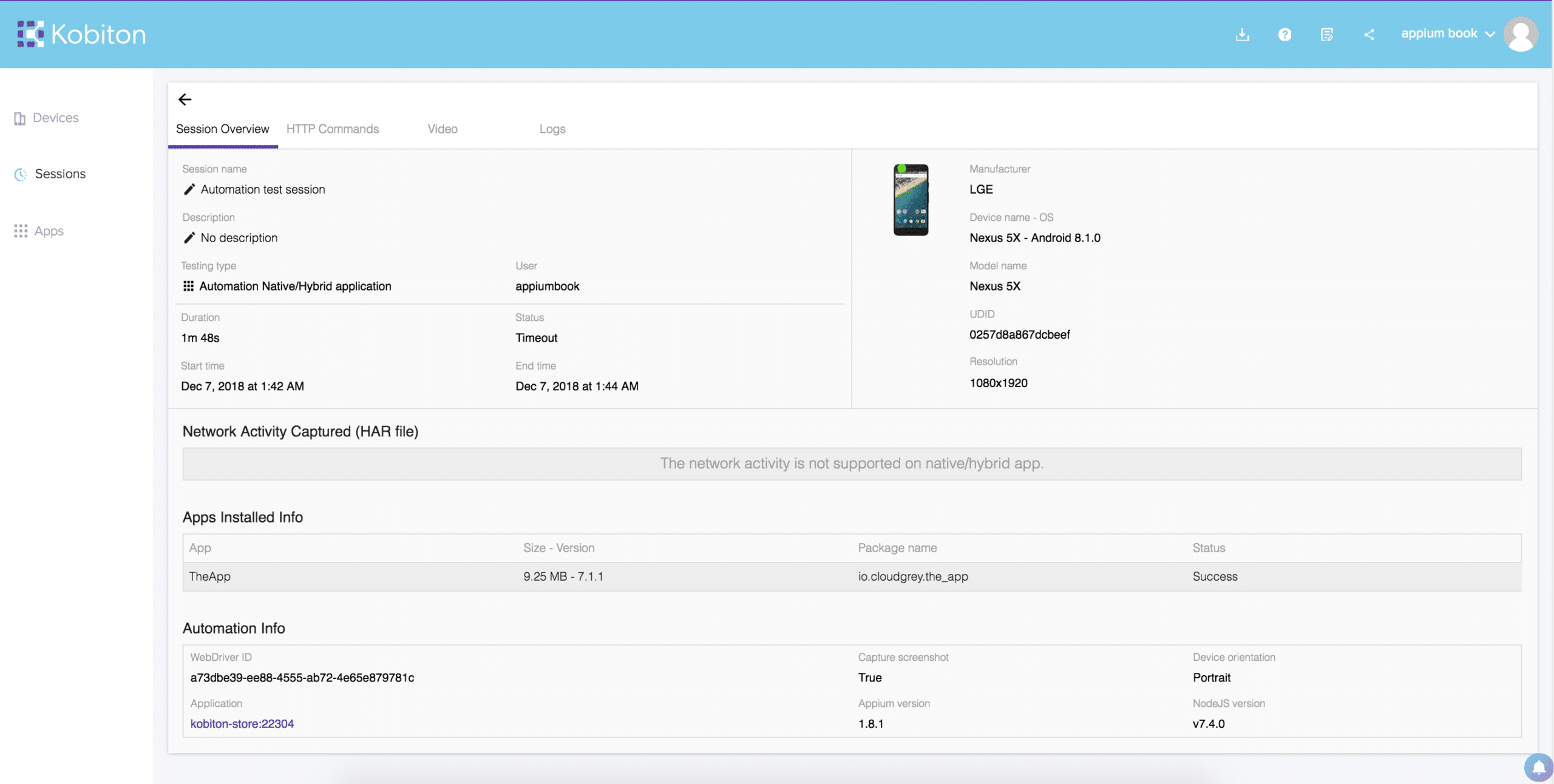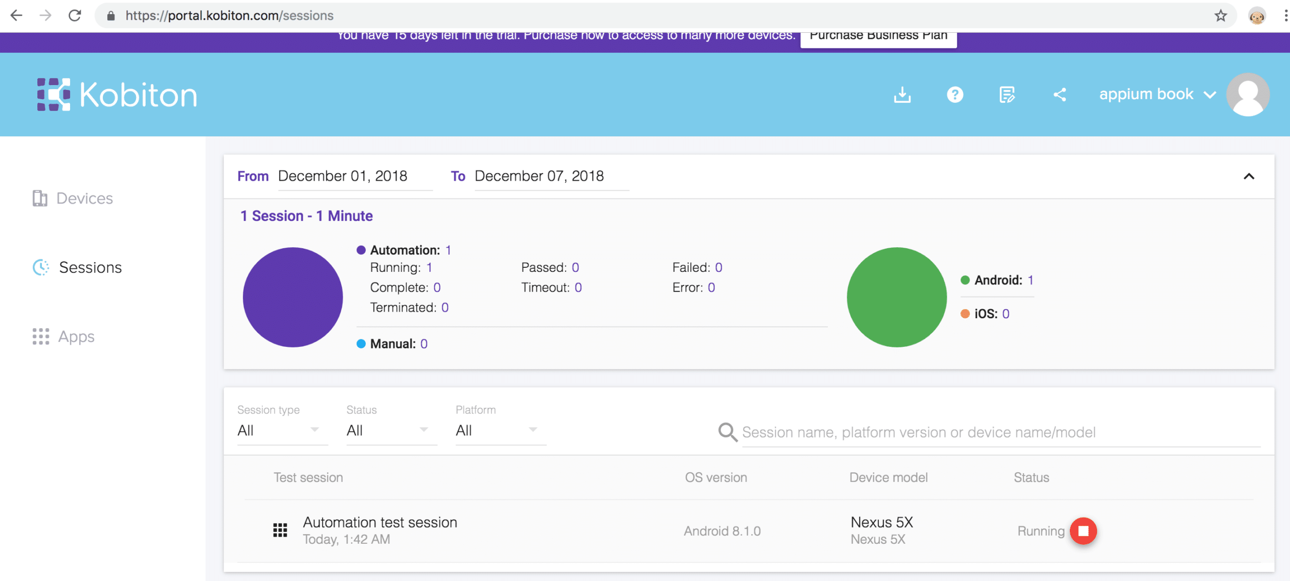 Figure-20: Kobiton Session is created.