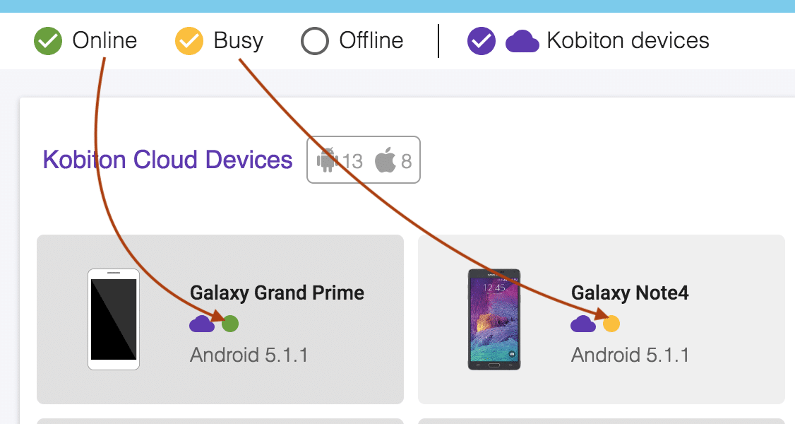 Figure-5: Kobiton Dashboard.NOTE: Please make sure the device upon which you want to start execution is Online (Available for execution) otherwise you can get the exception saying: org.openqa.selenium.SessionNotCreatedException: No device matching the desired capabilities
