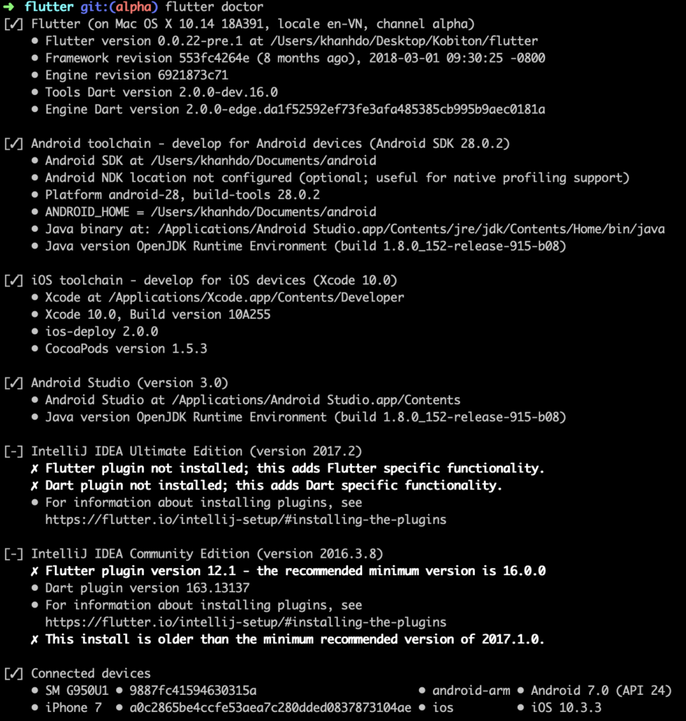 <em>$ flutter doctor</em> |