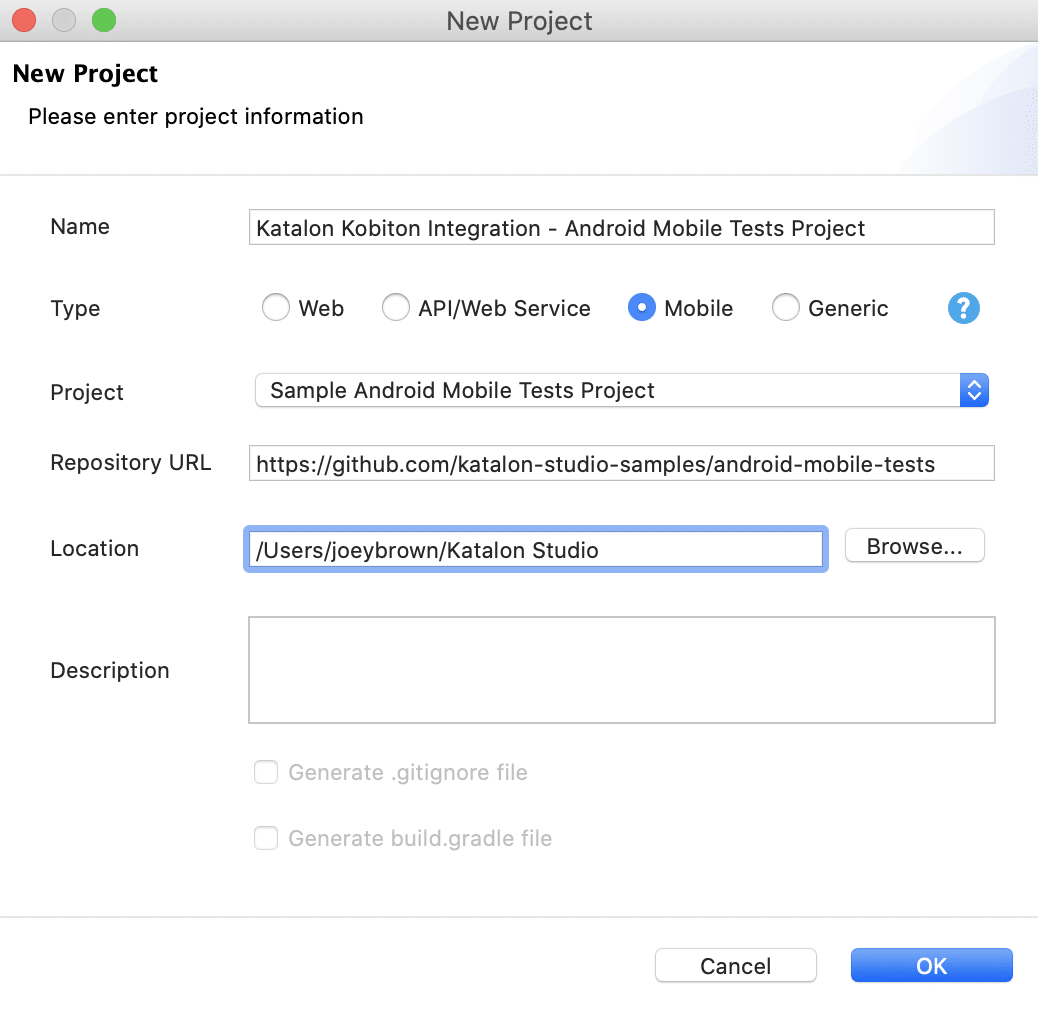 In this blog, I will use the Sample Android Mobile Tests Project on Katalon Studio for the whole guideline. First of all, I will create it as the screenshot below: